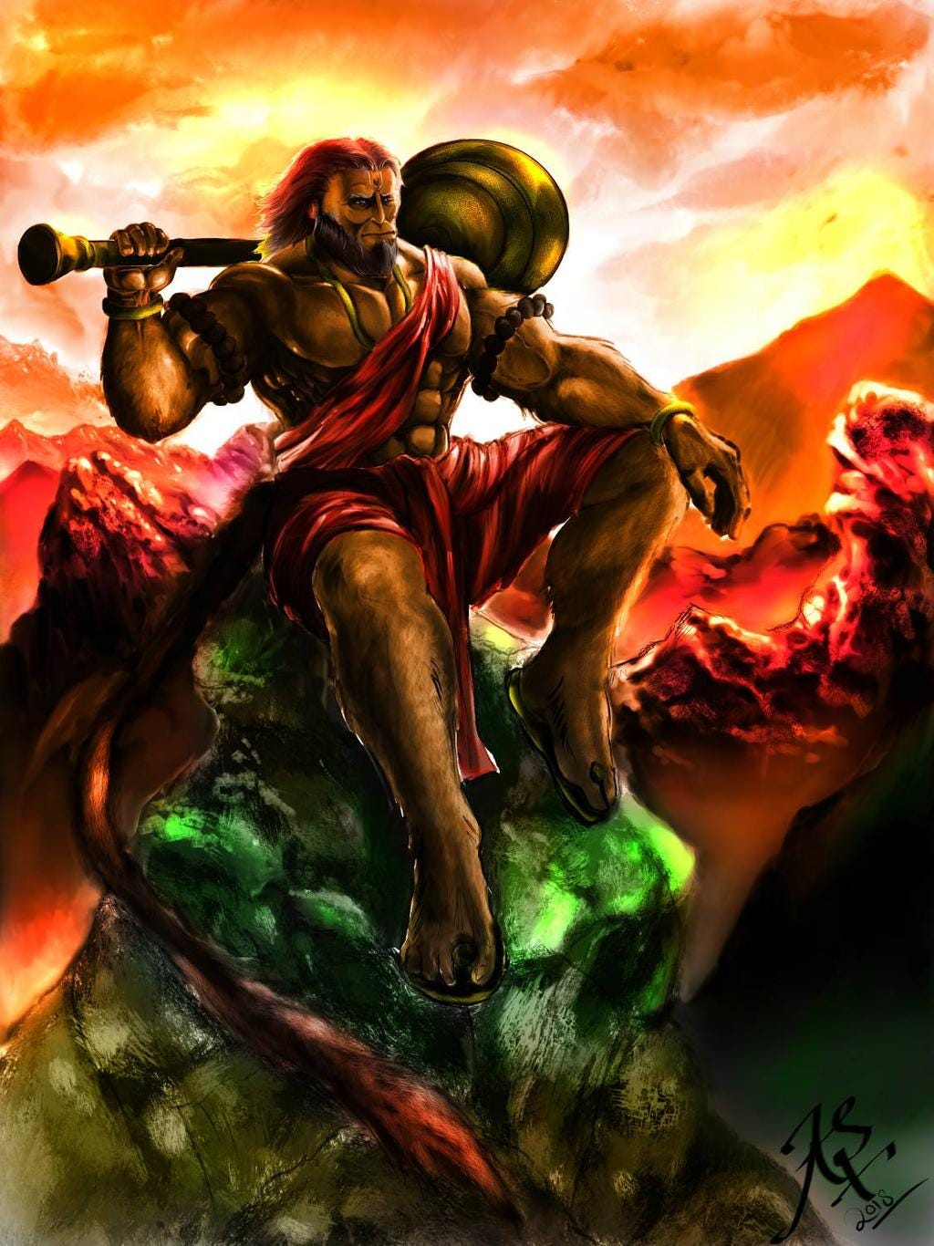 indrajith hanuman warrior unknown medium illustration.